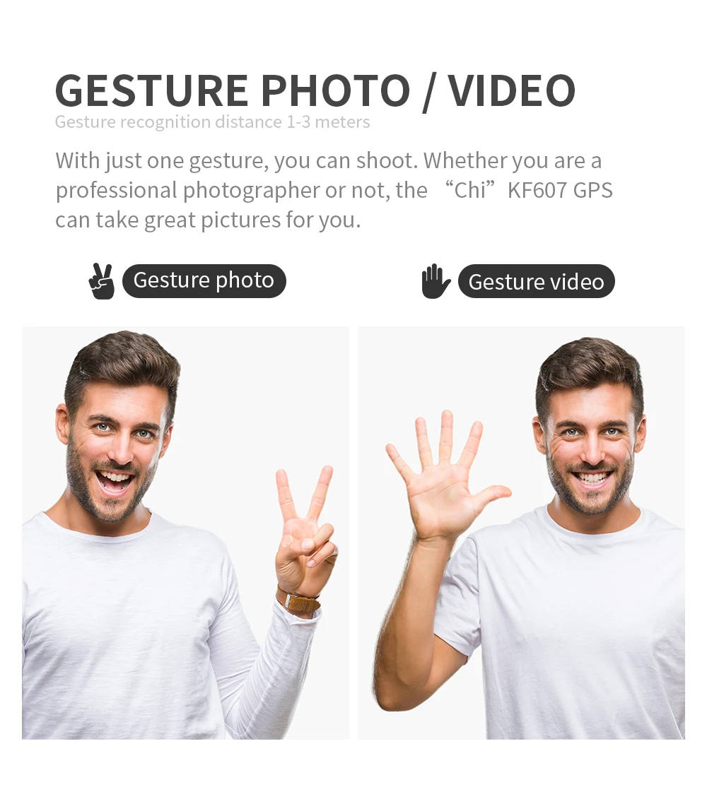 3. Распознавание жестов: в пределах 1-3 м от самолета, сделайте жесты камеры/жесты камеры лицом к камере