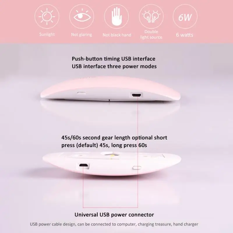 Портативный УФ светодиодный Сушилка для ногтей лампа может быть подключена к компьютеру, банк питания и мобильный телефон зарядное устройство, что позволяет сделать ваш маникюр в любое время и в любом месте.