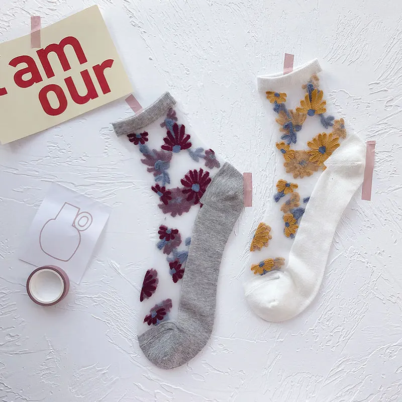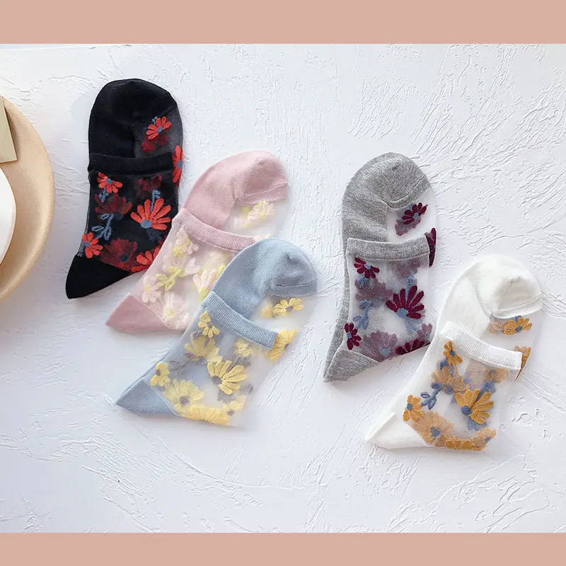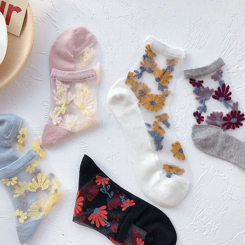 Женские летние носки с маленькими ромашками Модные женские пикантные носки из стекловолокна с отстрочкой дышащие атласные носки-светильник