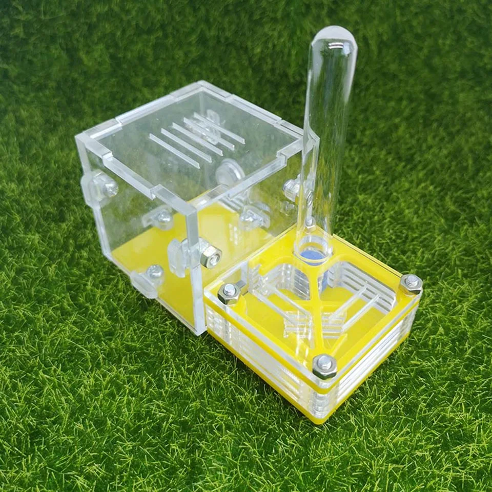 This is an ant plane nest palm nest new rear plane acrylic nest Color: red yellow Material: Acrylic Size: Nest outdoor diameter 4 * 4cm, nest indoor space height about 1.4cm Active area outer diameter 4 * 4 * 4cm Packing: carton packaging