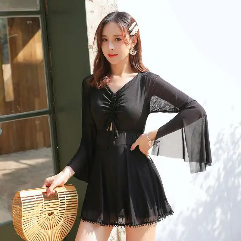 Новинка 2020, женский купальник, цельная юбка, боксеры, шорты, консервативный чехол, Талия живота, чистый красный, феи, веер, сплошной цвет, купальник