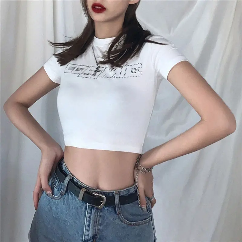 Блестящие Серебристые стразы, декорированные космическими буквами, облегающие, пара с любой юбкой с высокой талией, джинсами, брюками и т. д.