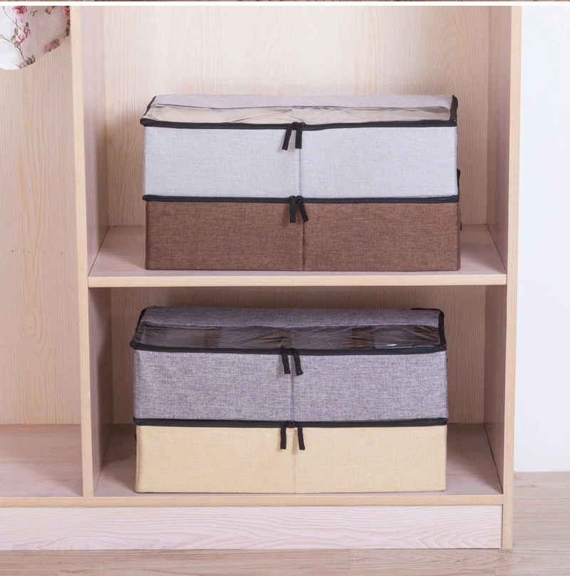 Washable Cloth Transparent Shoe Box Cotton and Linen Clothes Storage Box Multifunction Under The Bed Organizer