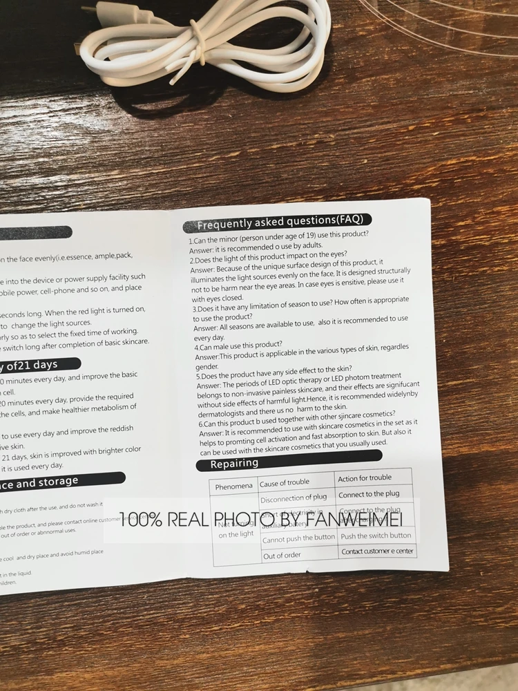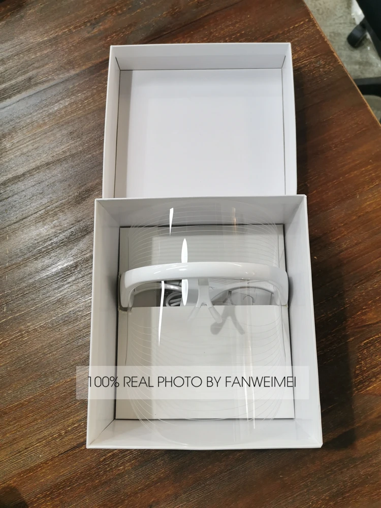 Пожалуйста, посмотрите реальное фото версии провода и он упакован -- Список продуктов: маска + Руководство пользователя + провод + Конверсионная головка зарядного устройства для телефона -- Упаковка: причудливая коробка + картонная коробка -- Информация о продукте: Материал ABS 75 г, очень светильник, легко фиксируется 3 цвета светодиодный