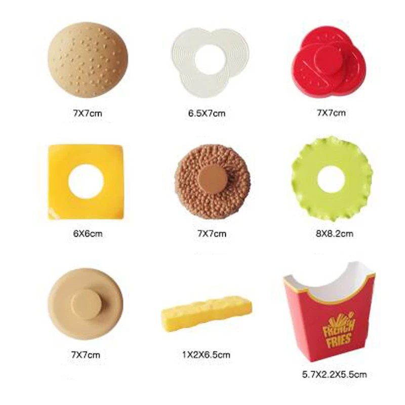 100% новый и высокое качество Легко играть Режущие игрушки могут стимулировать интерес детей. Обучение способности ребенка, улучшение их развития мозга. Это хорошая игрушка для упражнений в руках ребенка. Материал: экологичный и здоровый материал ABS. Нетоксичный и Безвкусный. Тип: фаст-фуд Материал: пластик Размер и цвет: как показано на картинке Посылка включает в себя: 1 х игрушки для еды, которые помогут Вам выбрать