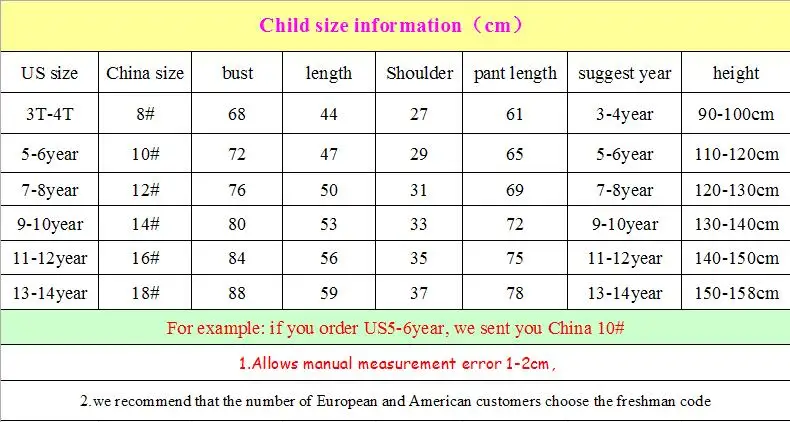 Например: вы выбираете американский размер 5 лет, мы отправляем вам китайский Размер 10