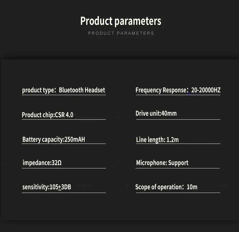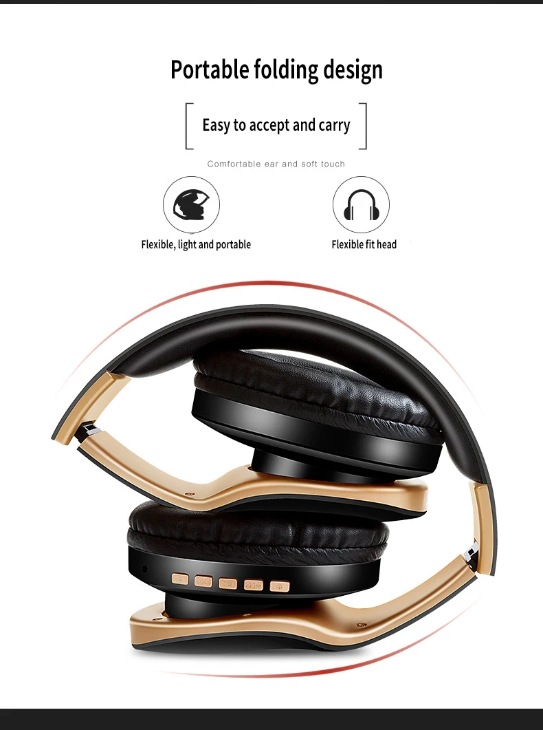 Feature: 1.Enjoy stereo music wirelessly 2.Unique foldable design make it portable 3.Remote hands free two-way chat 4.HI-FI, CD sound quality 5.Remote control to add further mobility 6.High-sensitive, multi -directional speaker for virtual surround sound 7.Supporting device: cellphone with Bluetooth function, iphone, Notebook, ipad etc 8.Operating Distance: ≧10mm without obstruction like building or magnetic field 9.Best Choice for listening music, watching movie, chatting online etc. 10.With SD card slot,a small SD card is enough for enjou music any time any where. package include: 1* Bluetooh Headset 1* USB Charging Cable 1* Audio Cable 1* User Manual
