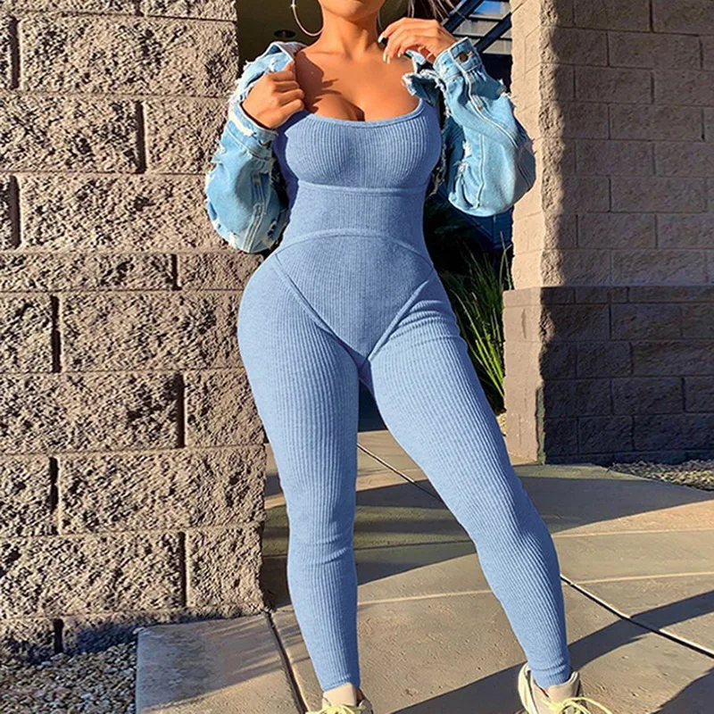 Повседневная спортивная одежда, вязанный Набор для йоги, сексуальный, с круглым вырезом, без рукавов, с открытой спиной, узкие брюки, облегающие Комбинезоны для фитнеса, женский комбинезон.