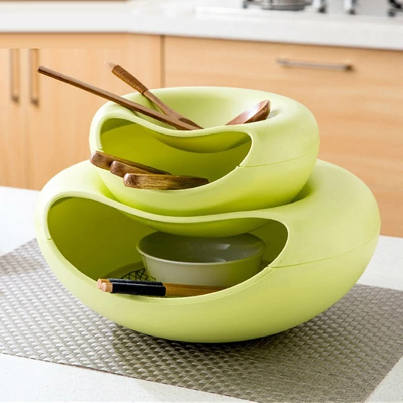 В верхней части можно положить небольшие закуски и легко подобрать, нижний слой может быть помещен в мусор для закусок.