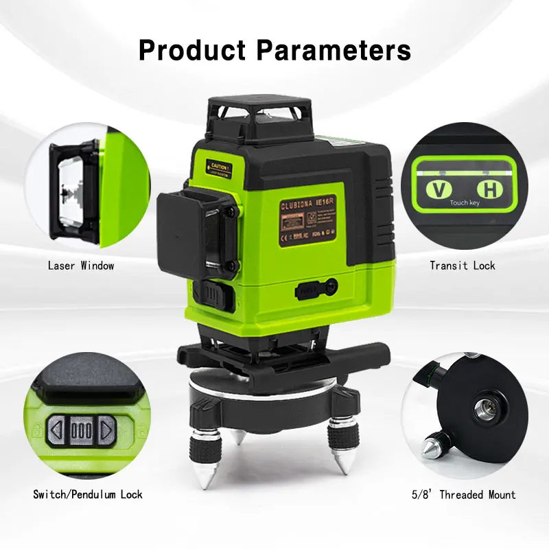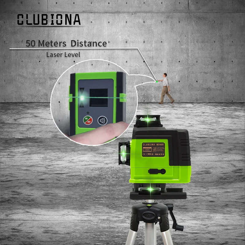 CLUBIONA IE16R мощный зеленый 16 линий 4D лазерный уровень дистанционное управление немецкий модуль для пола и потолка с литий-ионной батареей
