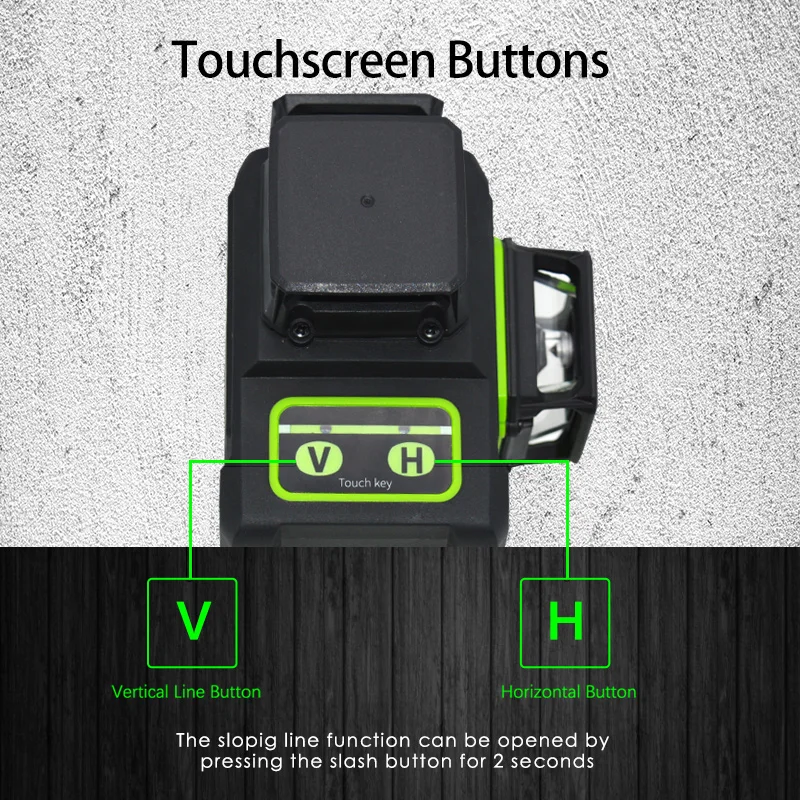 На этом лазерном уровне можно использовать как сенсорные кнопки, так и пульт дистанционного управления, чтобы легко управлять на расстоянии 15 м.