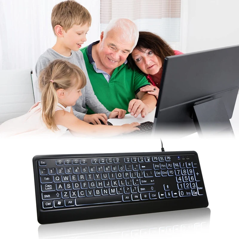 Большой шрифт Печать USB светодиодный клавиатура с подсветкой 104 клавиши Стандартный Полный размер Компьютерная клавиатура-белая подсветка