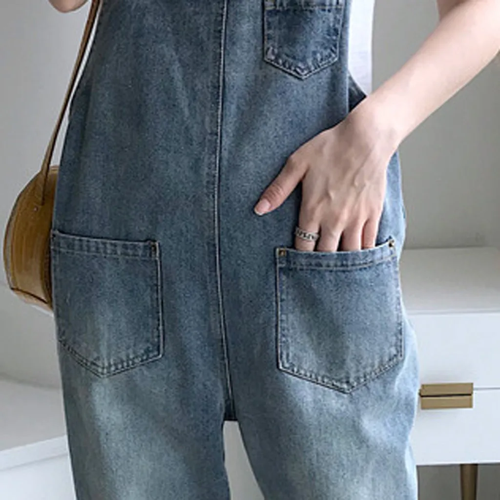 Женский Повседневный Свободный Длинный комбинезон без рукавов на бретельках с круглым вырезом