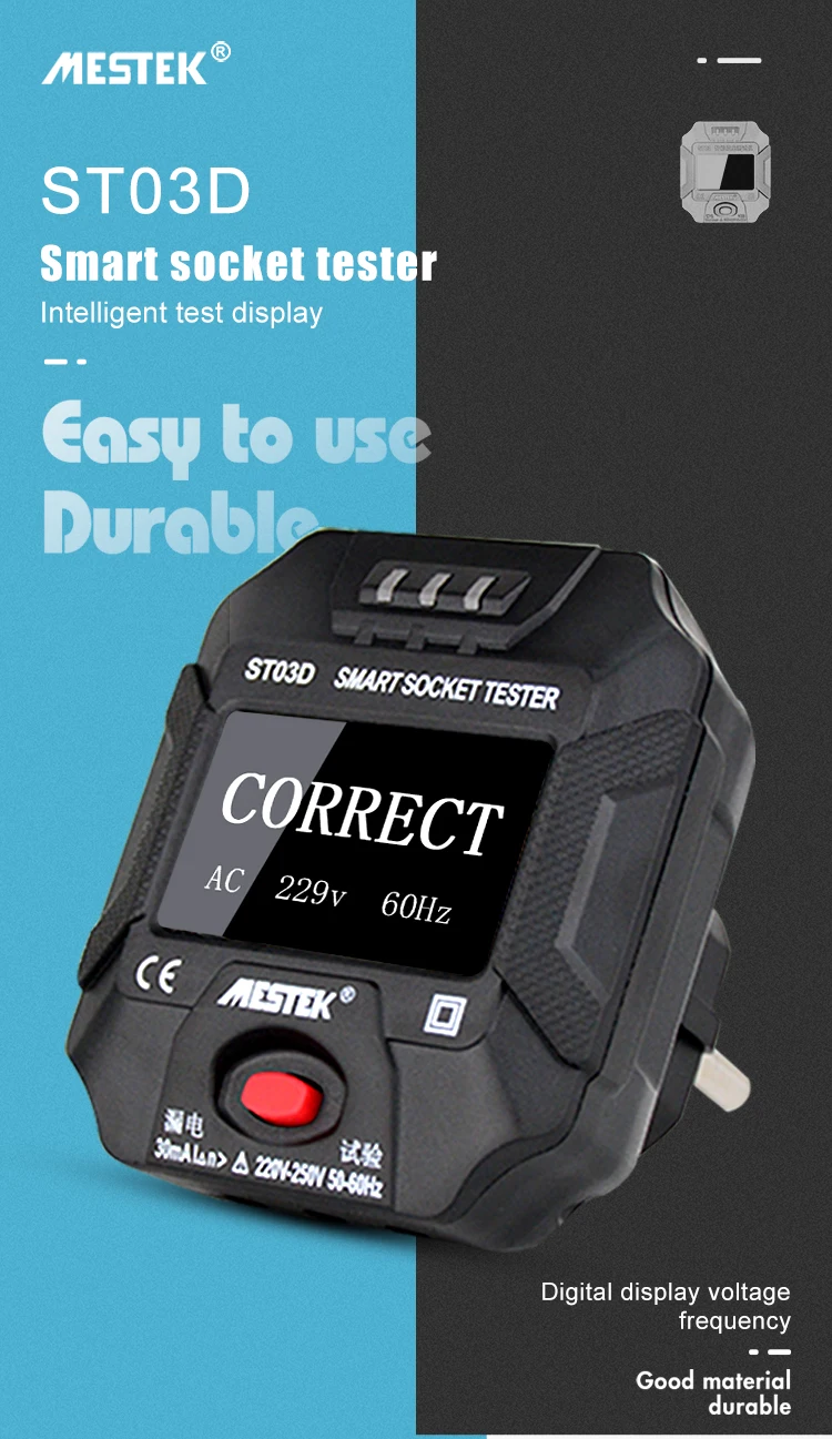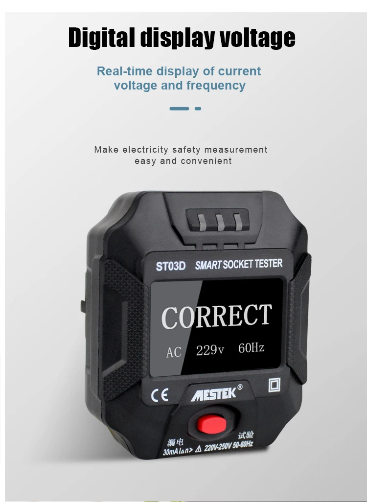 Интеллектуальный тестер гнезда в основном используется для полярного обнаружения проводки розетки и обнаружения утечки. Он может быстро и точно определить положение проводки розетки. Это интеллектуальный цифровой тестер. Напряжение и частота розетки могут быть обнаружены, и если проводка правильная или нет.