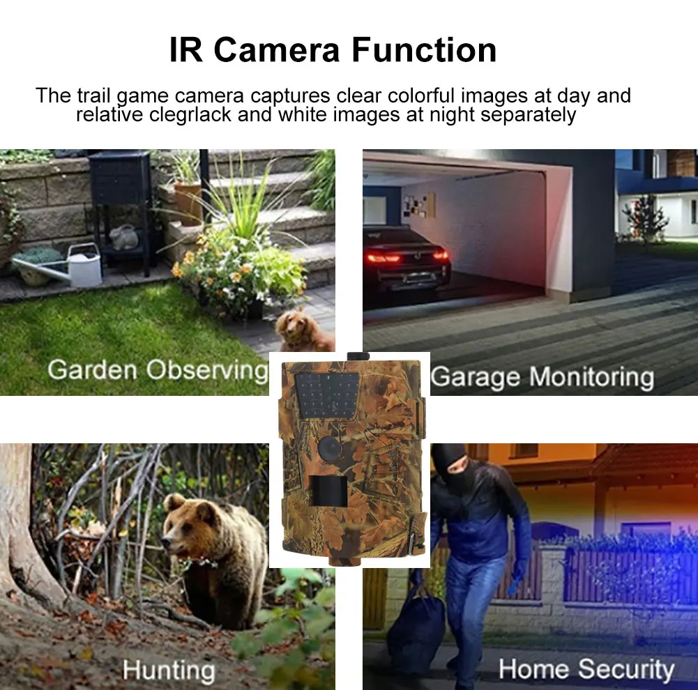 Новая основная камера наблюдения дикой природы HT-001B, камера ночного видения 14 МП, Охотничья камера s Введение 1. Эта цифровая камера для охоты на дикую природу с ИК и экраном идеально подходит для съемки дикой природы, опрокидывания мух, вандализма или любого другого скрытого наблюдения в отдаленных районах, где не практична электрическая сеть. 2. В корпусе видеорегистратора есть защита от атмосферных воздействий и встроенный инфракрасный детектор движения без вспышки, чтобы потревожить животных или предупредить нарушителей/мухобойщиков и т. д. 3. Можно использовать цифровые фотографии даты и времени 12 Мп или полноцветные видеозаписи и хранить данные на SD-карте (не входит в комплект). 4. Затем вы можете просматривать изображения/отснятые кадры через телевизор или на ПК (с помощью прилагаемого USB-кабеля). 5. На внутренней ЖК-панели есть индикатор заряда батареи, который сообщит вам о разрядке аккумулятора. Особенности: 100% новый и высококачественный! Нет дизайна дисплея, можно брать с собой. Имеется три режима: для съемки, съемки и видео и видеосъемки. Тонкая работа и высокие технологии. Поддержка TF-карты до 32 Гб. Может работать автоматически днем и ночью. Он может быть вызван любым движением человека (или животных) в определенном регионе, на котором находится датчик движения. Характеристики: Датчик изображения 5 мегапикселей цветной CMOS Память Tf-карта на 32 Гб (не входит в комплект) Линза F = 3,1; FOV = 90 ° Размеры 129 мм * 93 мм * 39 мм ИК-фильтр Полностью автоматический ИК-фильтр ИК светодиодный Низкое свечение 850нм (30 светодиодов) Расстояние PIR Высокий/Нормальный/Низкий Угол обзора PIR датчика 90 градусов Максимальное расстояние освещения ночного видения 65 футов/20 м Скорость запуска 1 секунда Задержка PIR 1/5/10/30 сек/мин (по умолчанию 1 сек) Разрешение изображения 12MP/8MP/5MP Несколько фотографий при одном обнаружении 1/3/6/9 Разрешение видео 1080P/720P/VGA Формат файла JPEG/AVI Выбираемое разрешение изображения Да Несколько фотографий при одном обнаружении Да Отпечаток даты и времени Авто Безопасность пароля 4 цифровых PIN-кода Ток в режиме ожидания 0,2 мА Время ожидания 6 месяцев Интерфейс ТВ-выход (NTSC/PAL); USB; Внешний 6 В постоянного тока, TF держатель для карт Аксессуары Ремень, руководство пользователя, CD, пульт дистанционного управления, USB кабель Рабочая температура -30 ~ + 70 ℃ Мощность 4 × батарейки типа АА (не входят в комплект) Фазовый отпечаток Луны Да Водонепроницаемый IP65 Сертификат FCC,CE,RoHS 1 цифровая камера 1 х USB кабель 1 х ремень 1 х Руководство