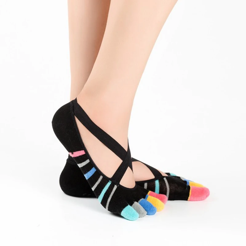 5 пар, Пилатес, Йога, носки, женские, с пятью носками, повязки, спортивные носки, красочные, пять пальцев, удобные, невидимые, нескользящие носки