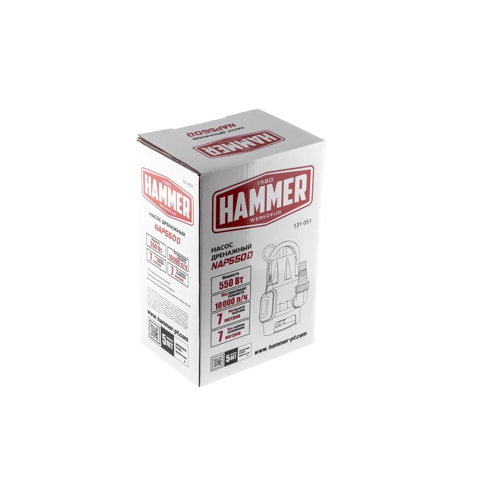 HAMMER NAP550D – погружной дренажный насос для откачивания грязной воды из подвалов, а также для полива огорода. Пригодится на даче, за городом или в саду.