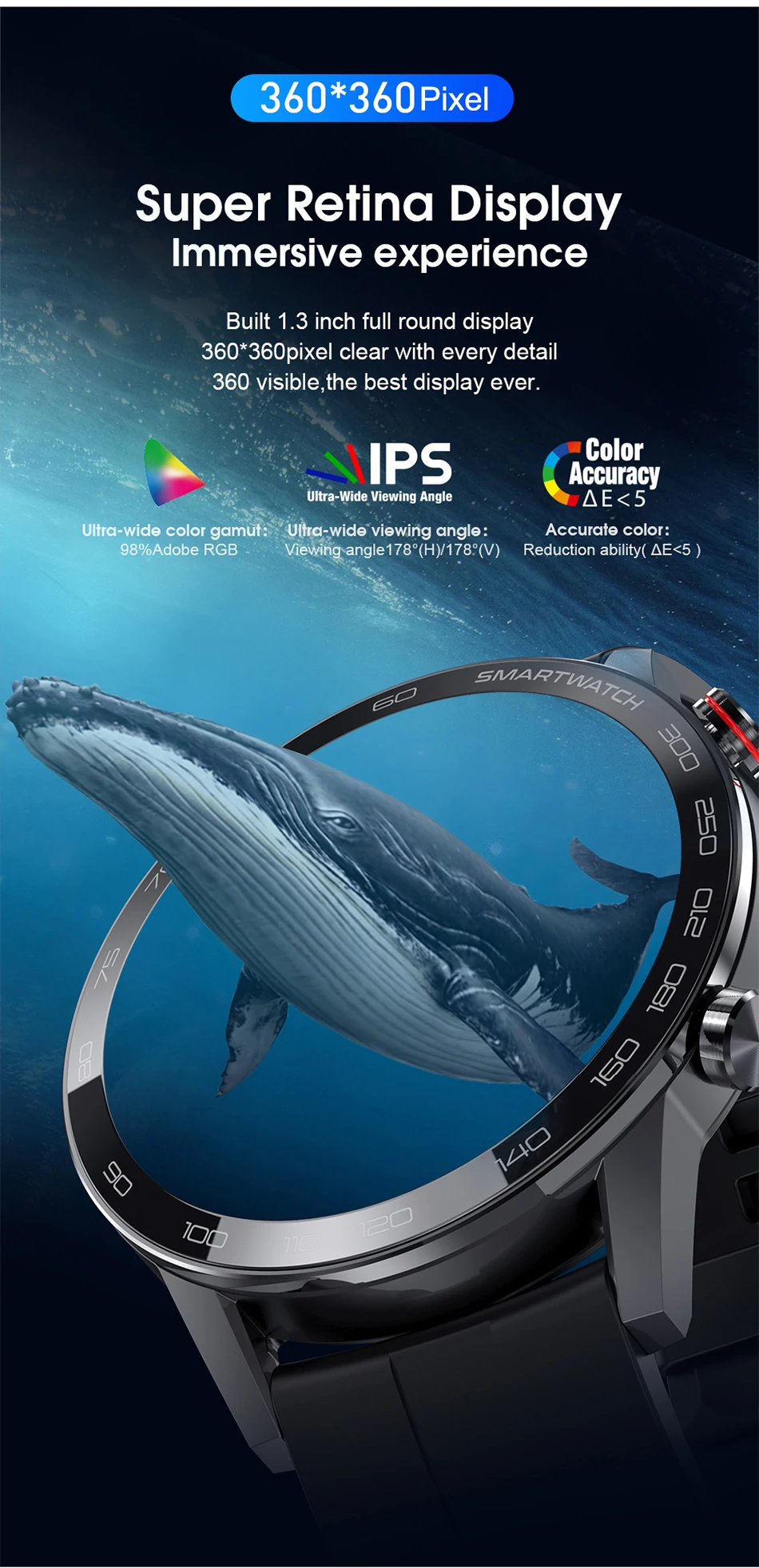 * Экран: 1,3-дюймовый TFT полный круглый 360 * 360 пикселей