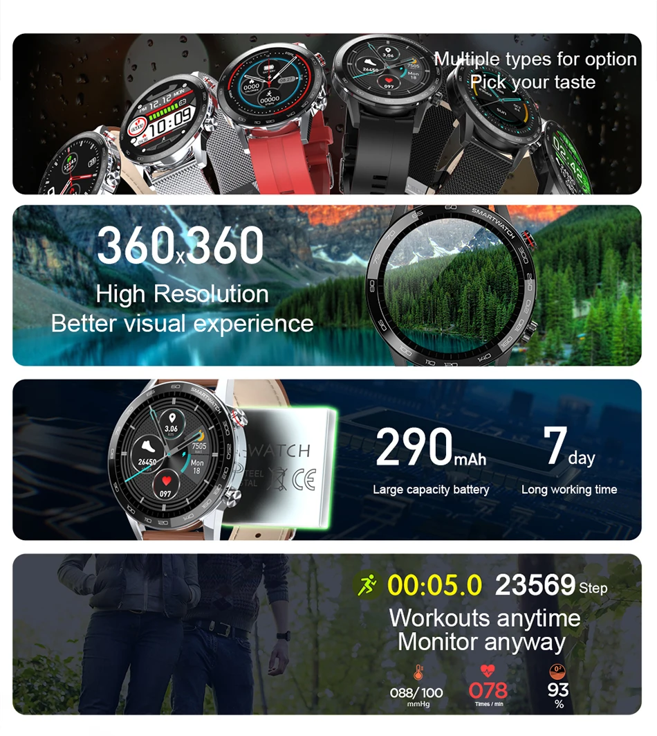 Водонепроницаемый IP68, 1,3-дюймовый полноразмерный круглый дисплей сетчатки 360 * 360, время автономной работы 7 дней