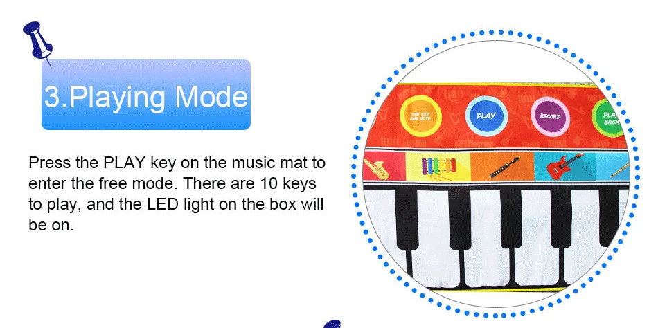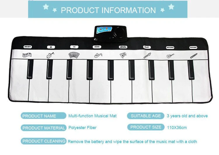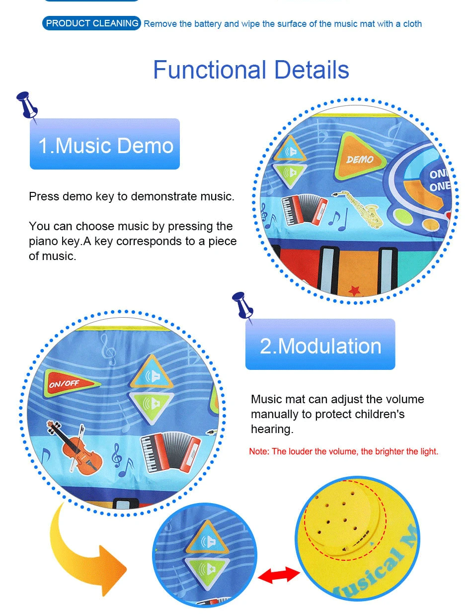 Высокое качество и экологически чистый материал. Многофункциональная поддержка видов воспроизведения и звукового инструмента. Не только развивает чувство прикосновения и ощущения детей, но и развивает чистое удовольствие через этот коврик. Это лучший подарок для детей.