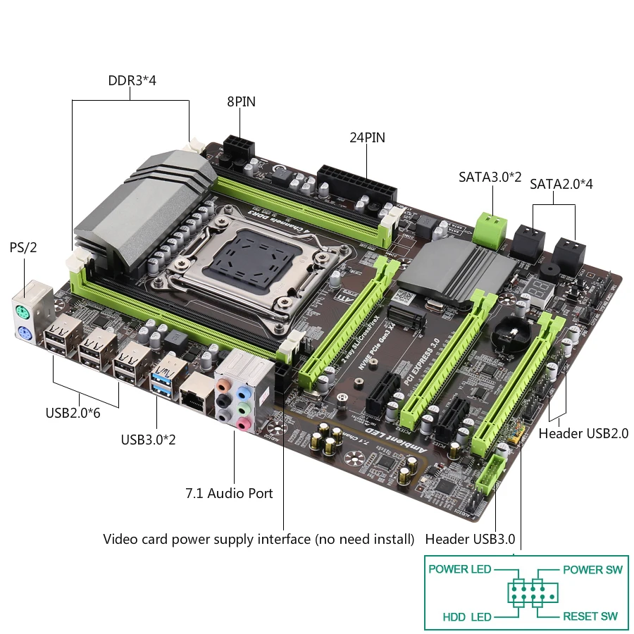 Kllisre X79 DDR3 ПК Материнские платы 2011 процессор компьютер 4-канальная материнская платаОсобенность:100% Новинка и высокое качество!Поддержка M.2 NVMEПоддержка серверной памяти DDR3 REG ECCС диагностической картой ПКВысокая совместимость для большего опыта.Все твердые конденсаторы, тонкая работа, профессиональная стабильность.Спецификация:Чипсет: Intel B75/P75Модель: KllisreСостояние: полностью новыйРазъем процессора: LGA 2011Структура: ATXПоддерживаемые процессоры: серия Intel с разъемом LGA 2011 (Xeon E5 2620/2630/2640/2650/2660/2665/2670/2680/2689/2690 C2 & V2; )Разъем памяти: 4 * DDR3Максимальная поддерживаемая память: 4*32 ГБ DDR3Поддерживаемый Тип памяти: 800/1280/1333/1600/1866 МГц (оперативная память сервера не может работать с оперативной памятью настольного компьютера, это проблема совместимости.)Встроенная Видеокарта: нетРазмеры материнской платы: 280*220 ммВес материнской платы (посылка): примерно 1,1 кгПримечание: 1: цвет нижней пластины слота может варьироваться от партии к партии, но это не повлияет на использование продукта. Продукт постоянно оптимизирован и модернизирован.2: замеры сделаны вручную, поэтому возможны отклонения на 1-3 мм.3: из-за различных дисплеев и разсветильник изображение может не отображать фактический цвет изделия. Спасибо за понимание.4: Этот планформ нуждается в мощном источнике питания. Убедитесь, что вашего блока питания достаточно для поддержки этой planform.(не менее 500 Вт фирменного блока питания)5: батарея на фотографиях материнской платы будет удалена перед отправкой, так как батарея запрещена на почте Китая и на таможне