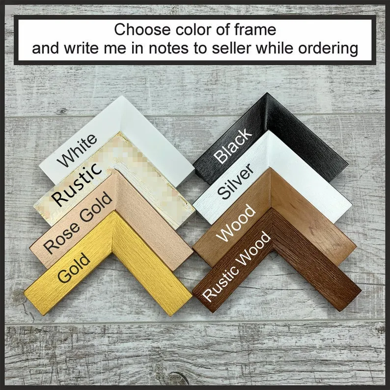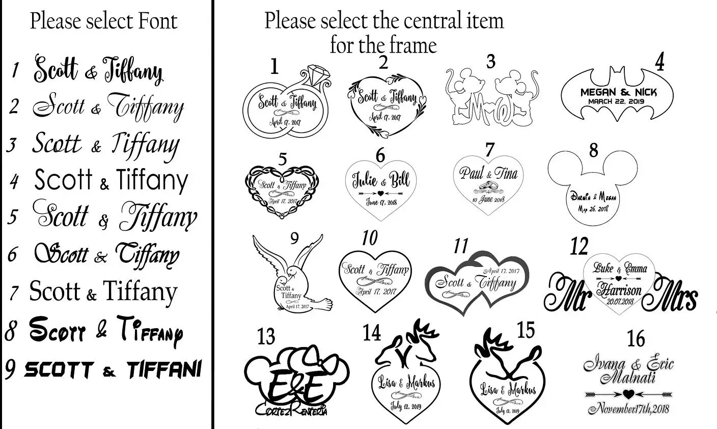 1.Frame color and background color.If you don't leave any details about these two information after 48hours, we will send the first image color of the product to you. 2. Engraving text and font you like.We accept any language to customize on the big centerpiece and on the sign box.Just leave the details in the seller notes or message to us. 3.If you don't know how to leave notes in the seller notes, you can send the messages to us directly after ordering.