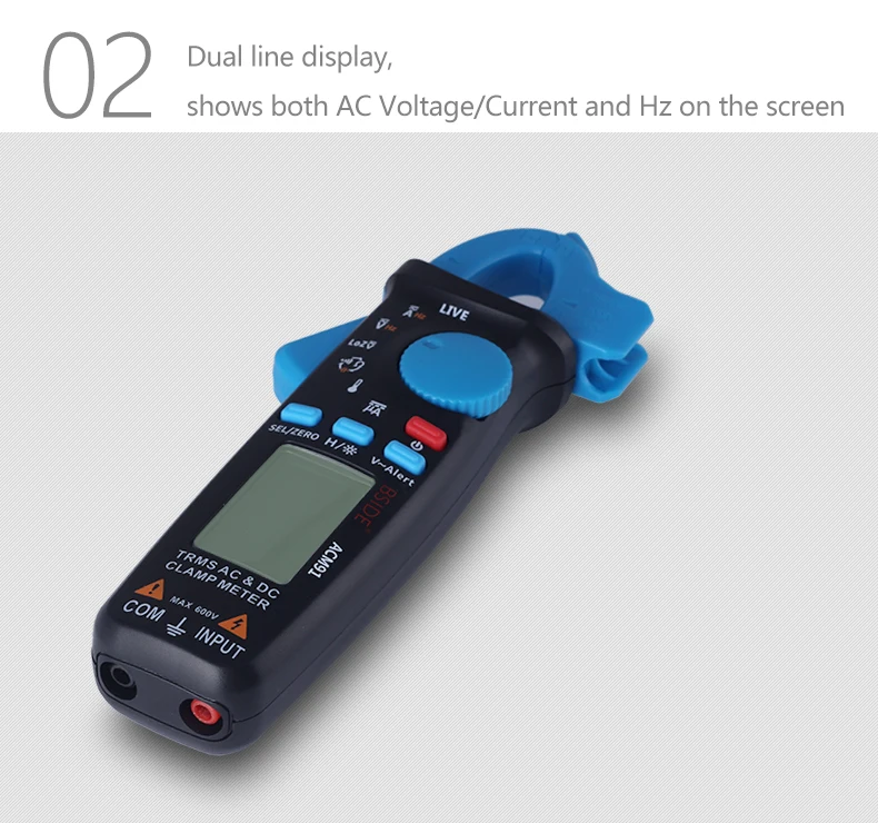 После включения нажмите кнопку «ноль» более 2 секунд, И верхняя часть зажимного измерителя держит оригинальное направление и движется вперед, чтобы прикрепить провод, наконец, нажмите кнопку «удерживайте», чтобы получить важные показания.
