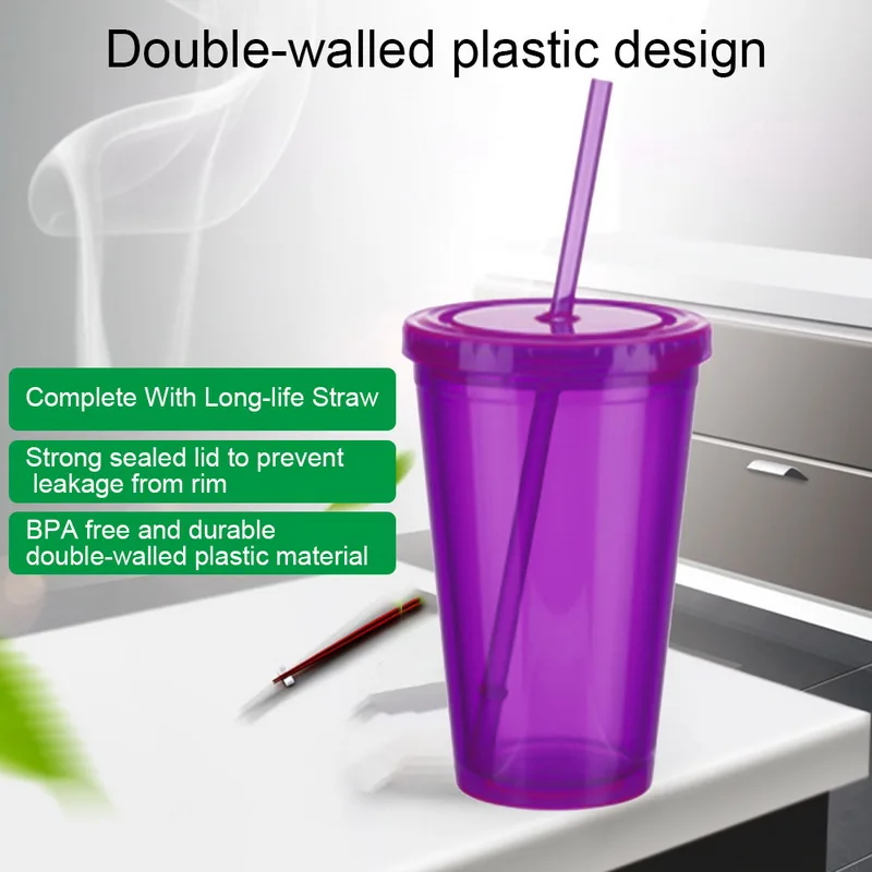 1. Новый пластиковый стакан с крышкой и соломой, большое отверстие для легкого наполнения кубиков льда или любых напитков.