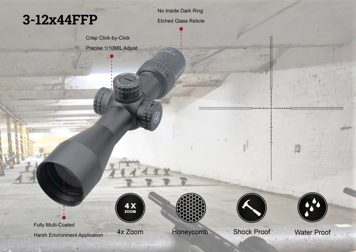 ·Истинный 4-кратный коэффициент масштабирования от 6 до 24 увеличение, боковой Фокус мин @ 10 Yds