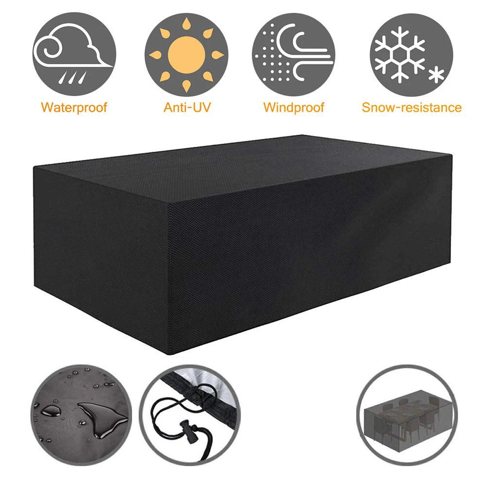 Особенности: ветронепроницаемая водонепроницаемая защита от дождя и снега, защита от ветра, защита от ультрафиолета 1. Чехлы для мебели в патио достаточно большие, чтобы покрыть все виды наружной мебели для патио, стола, скамейки, журнального столика, стульев или другой прямоугольной мебели. Проверьте размеры мебели для правильной посадки. 2. Изготовлен из нейлоновой ткани Оксфорд высокой плотности 210D, которая устойчива к атмосферным воздействиям и пыли, эффективно предотвращает промокание мебели из-за дождя и снега. 3. На кромке мебельной крышки есть веревка на шнурке. Даже в суровых условиях Ваша мебель может быть безопасной, чистой и сухой. 4. Изготовлен из удивительного гидрофобного материала и двойных связанных краев обеспечивает полную защиту крышки от растрескивания. Внутренний слой имеет УФ-покрытие, обеспечивает исключительную защиту под солнечным светом. 5. С удобными мешки для хранения, патио мебель крышка легко складывать, хранить и носить, не занимают места. Примечание: Если ветер очень сильный (например, ураган), мы предлагаем вам разместить некоторые тяжелые предметы на крышке наружного стола, чтобы лучше предотвратить удар покрытия.