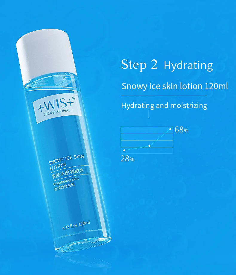 Название: комплект для ухода за кожей со снежным льдом Бренд: WIS Ингредиент: Nicotinamide + экстракт арбутина + экстракт снежного лотоса Тип кожи: подходит для всех типов кожи Посылка включает в себя: Очищающее Средство 100 г Лосьон 120 мл Эмульсия 90 г Крем 60 г