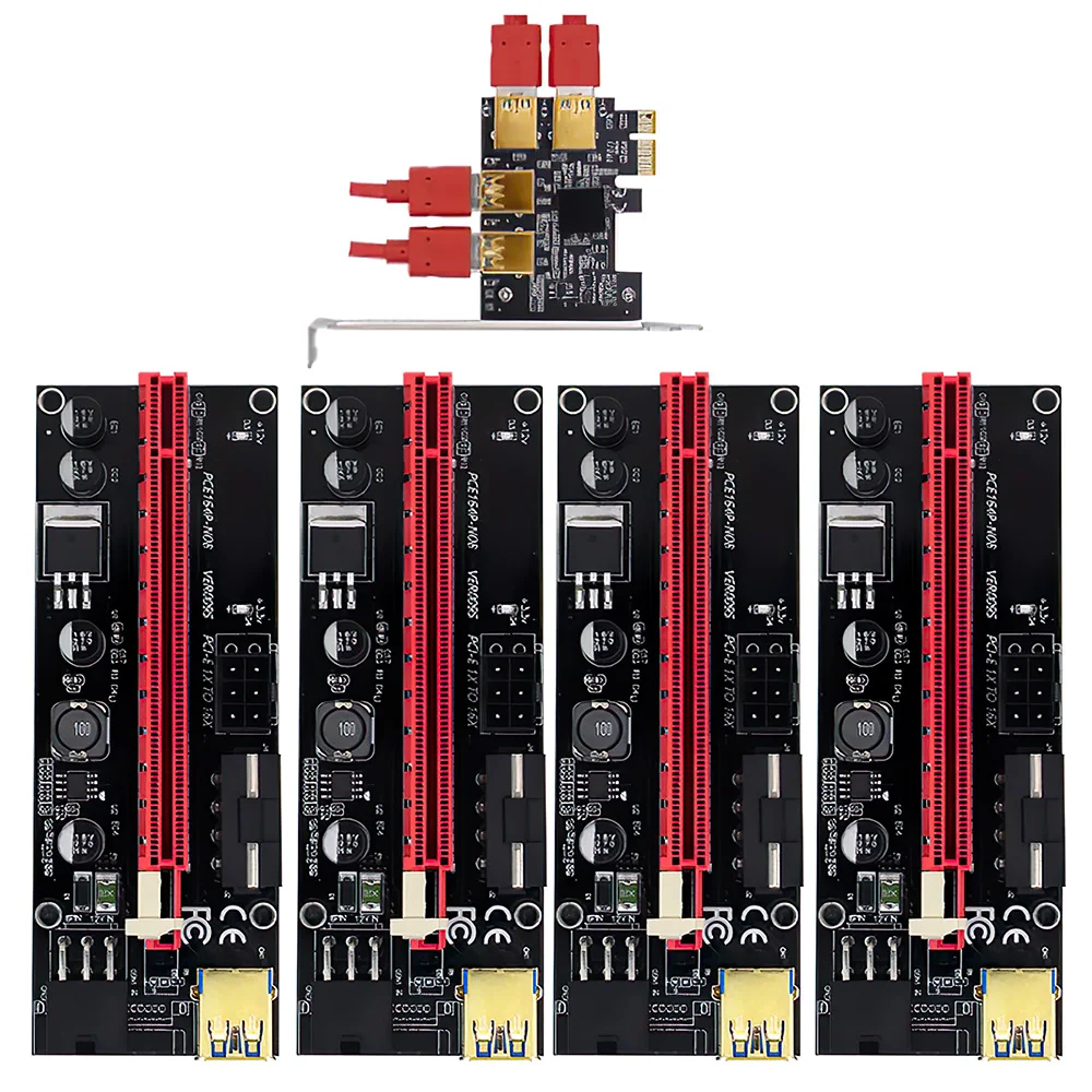 Карта 4 шт. Riser 009S 1 * Адаптер PCI-E 1x4 4 * PCI-E 16X подъемная плата 4 * PCI-E 1X адаптер карты 4 * SATA 15-pin до 6-pin кабель питания 4 * USB 3,0 кабель