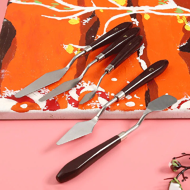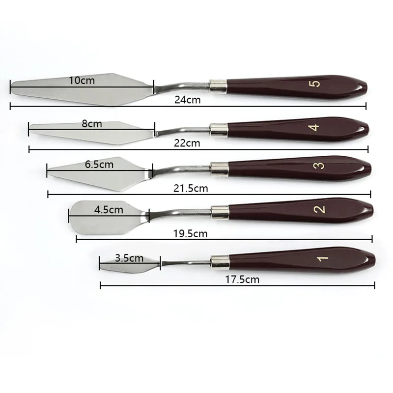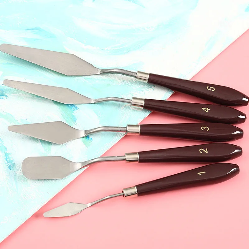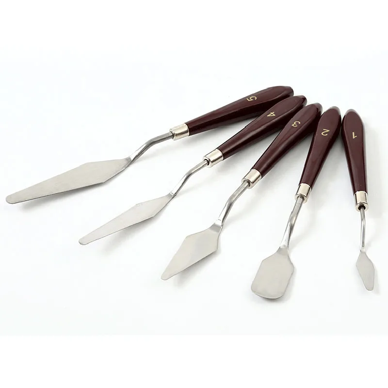 Различные формы и стили для смешивания, соскабливания пигментов и нанесения густой краски.