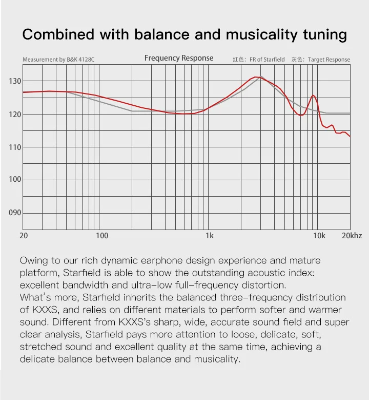 Более того, Starfield наследует сбалансированное трехчастотное распределение KXXS и полагается на различные материалы для более мягкого и теплого звука. В отличие от KXXS Шарп, широкое, точное звуковое поле и супер четкий анализ, Starfield уделяет больше внимания рыхлому, нежному, мягкому, растягивающемуся звуку и отличному качеству одновременно, достижение тонкого баланса между балансом и музыкальностью.