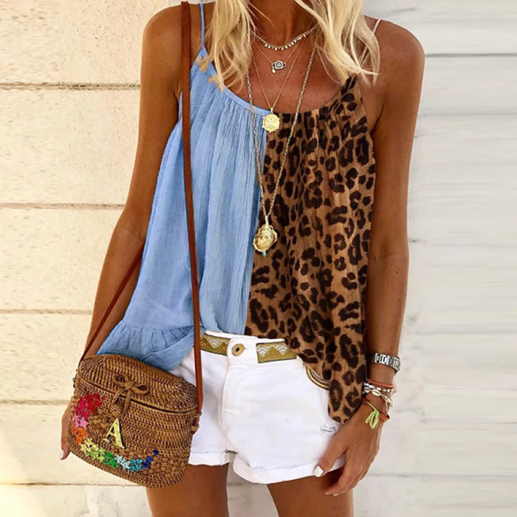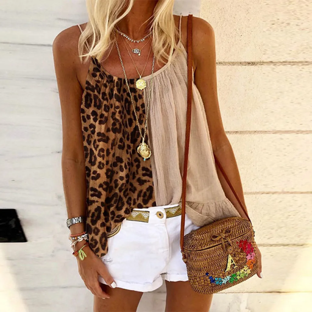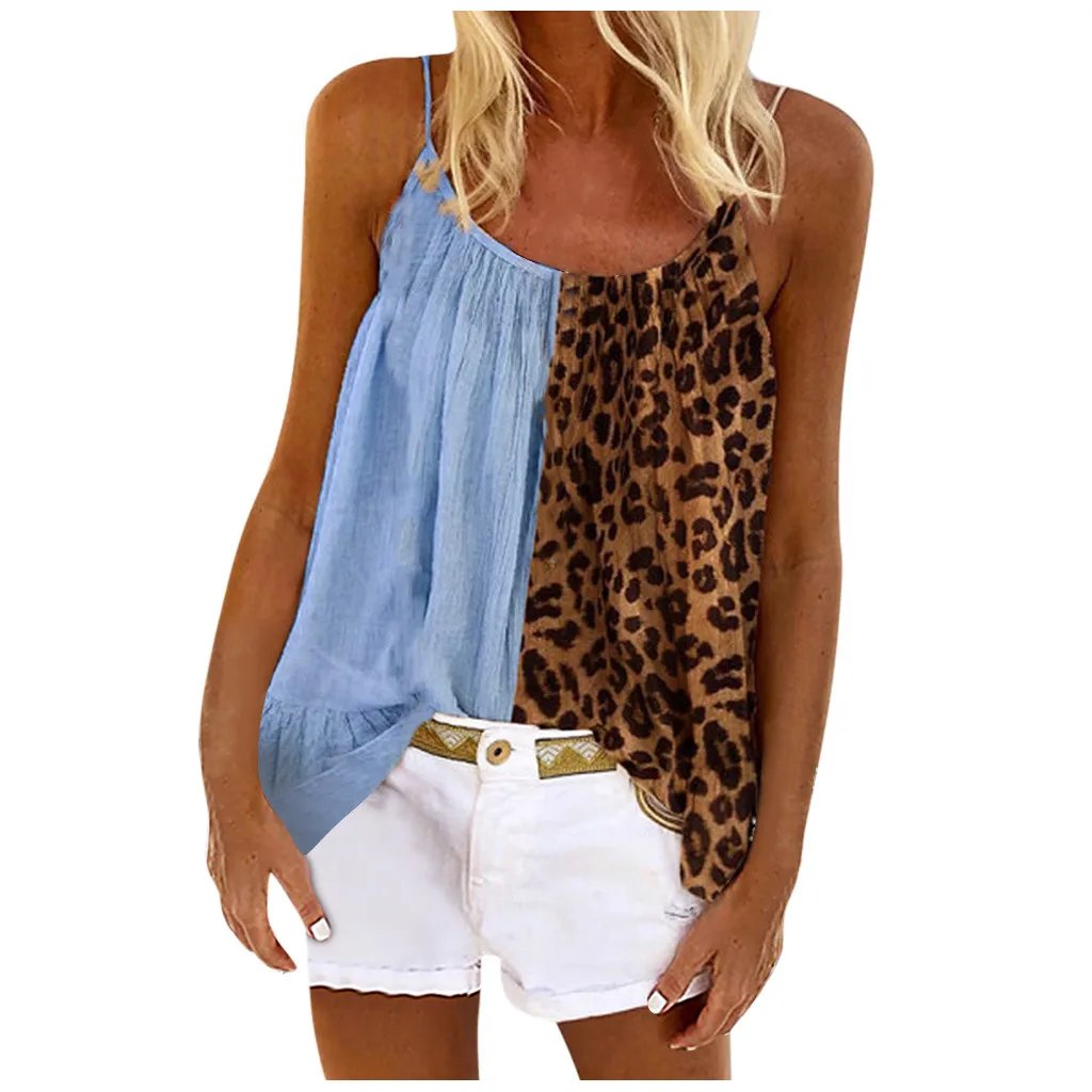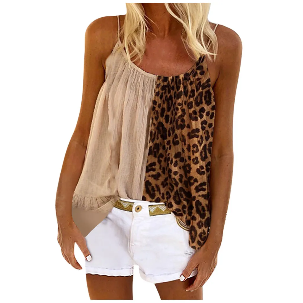 Женская Повседневная Свободная футболка без рукавов, топ с леопардовым принтом