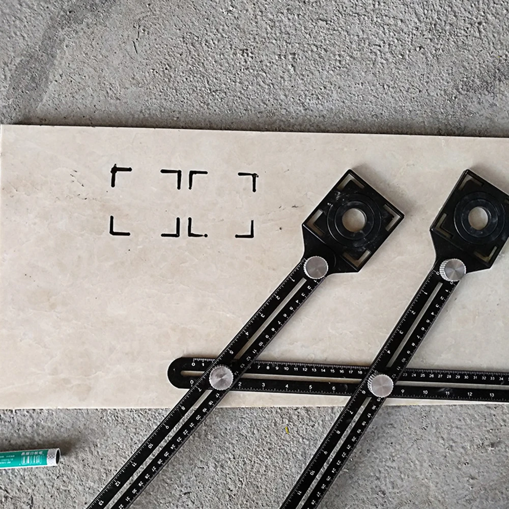 Универсальный многофункциональный регулируемый инструмент, складной локатор для отверстий в плитке с двойной головкой, измерительная линейка с фиксированным углом перфоратора для кладки стекла