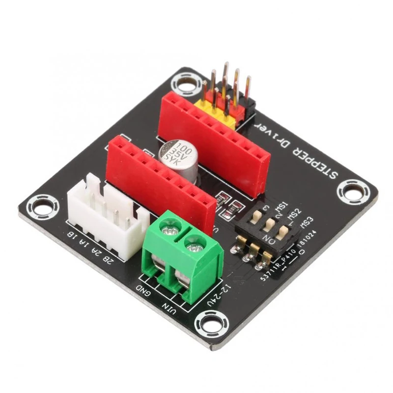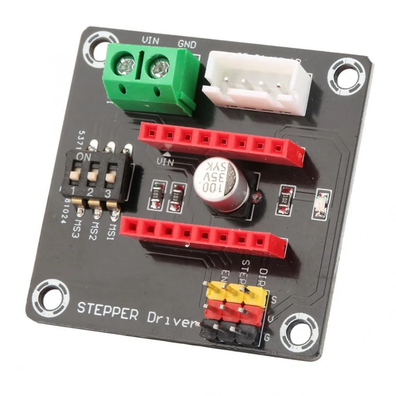 On-board DIP switch, you can easily adjust the drive segments. Terminal power connector for easy connection of drive power. Compatible with 12/24V drive scheme. Highly integrated expansion board, small size, stable performance. Suitable for 42 stepper motor drive, 3D printers and DIY. Logic voltage:5V Input voltage:12-30V Ports:Digital Interface:Direction, enable, speed Size:42*42*10mm Applicable module:A4988, DRV8825 Motor Type:DC Motor colour:black material:PC + Metal Package Contents: 1 * Stepper Motor Driver Expansion Board Only the above package content, other products are not included. Note: Light shooting and different displays may cause the color of the item in the picture a little different from the real thing. The measurement allowed error is +/- 1-3cm.