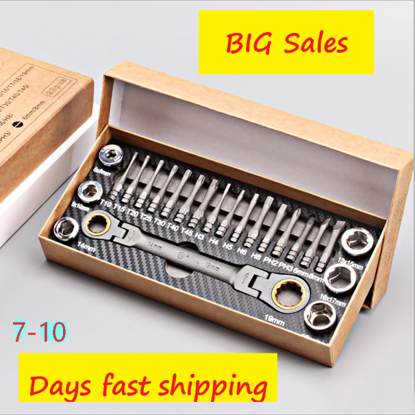 Multifunction Ratcheting Socket Wrench Set Box End Wrench Metric with Adapter Socket Screwdriver Bit Plumb Pipe Auto Repair Tools