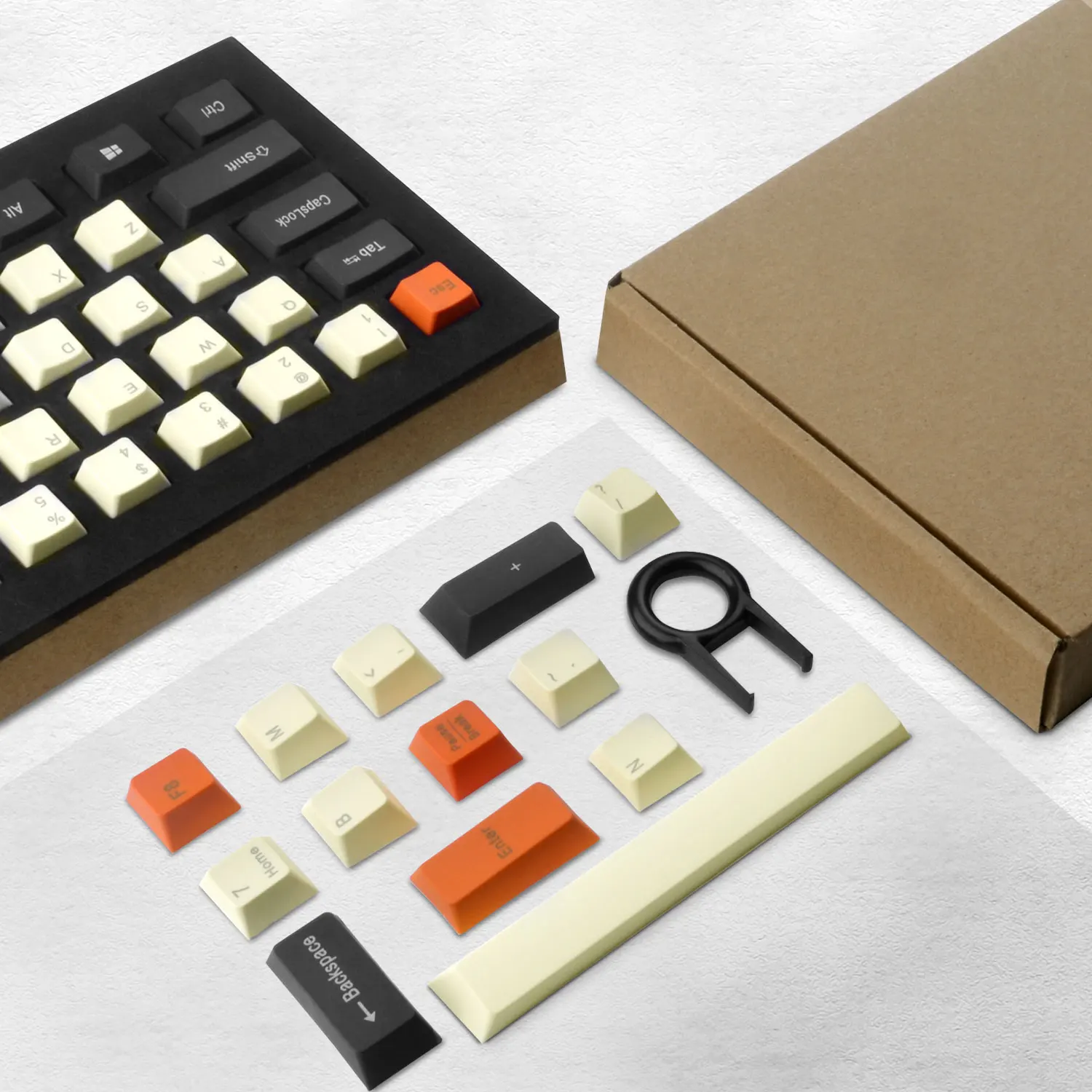 Кейкапов выполнена из PBT Материал, не легко носить и отлично подходит для сенсорный экран.