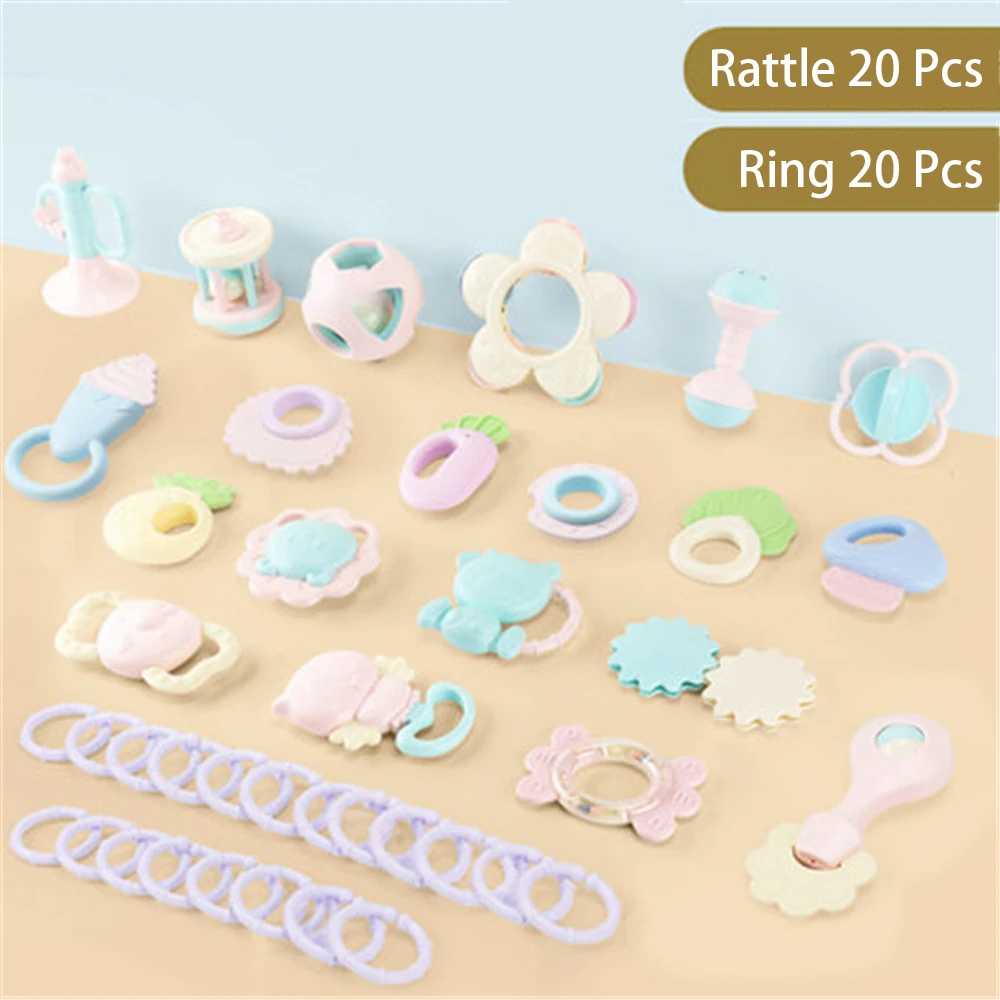 Детская погремушка, 40 шт., 0-12 месяцев, для новорожденных, в форме Мягкого колокольчика, прорезыватели, ручная тряска, портативное кольцо, развивающие игрушки для малышей