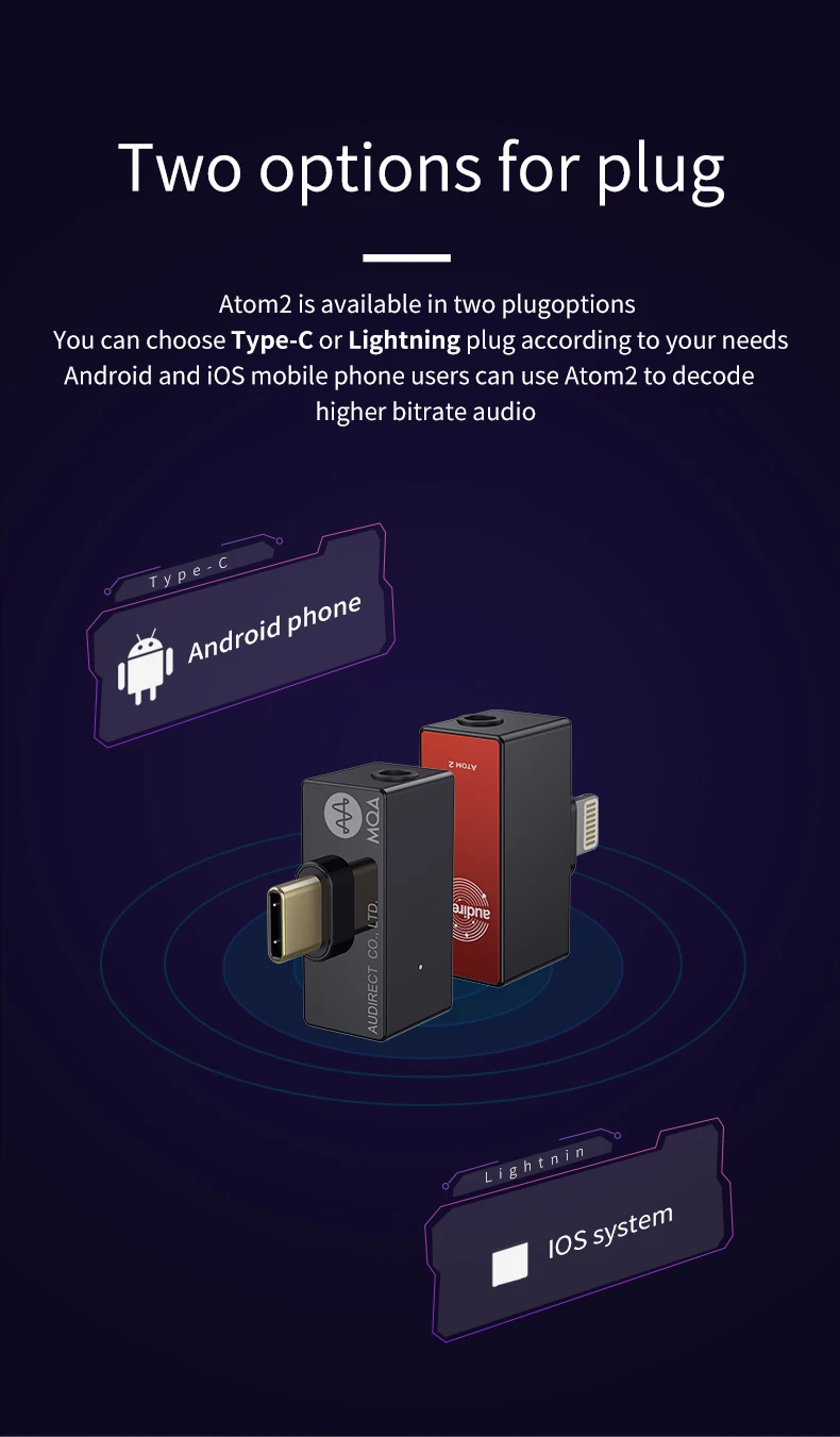 Hilidac Audirect Atom2 MQA HiFi портативный USB DAC/AMP ES9281AC DSD512 32 бит/768 кГц Тип C/ Lightning Atom 2 Декодер Усилитель