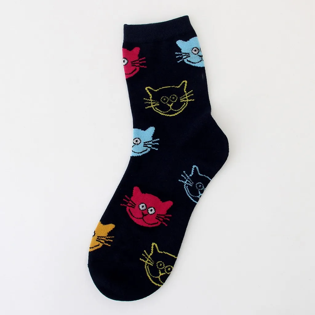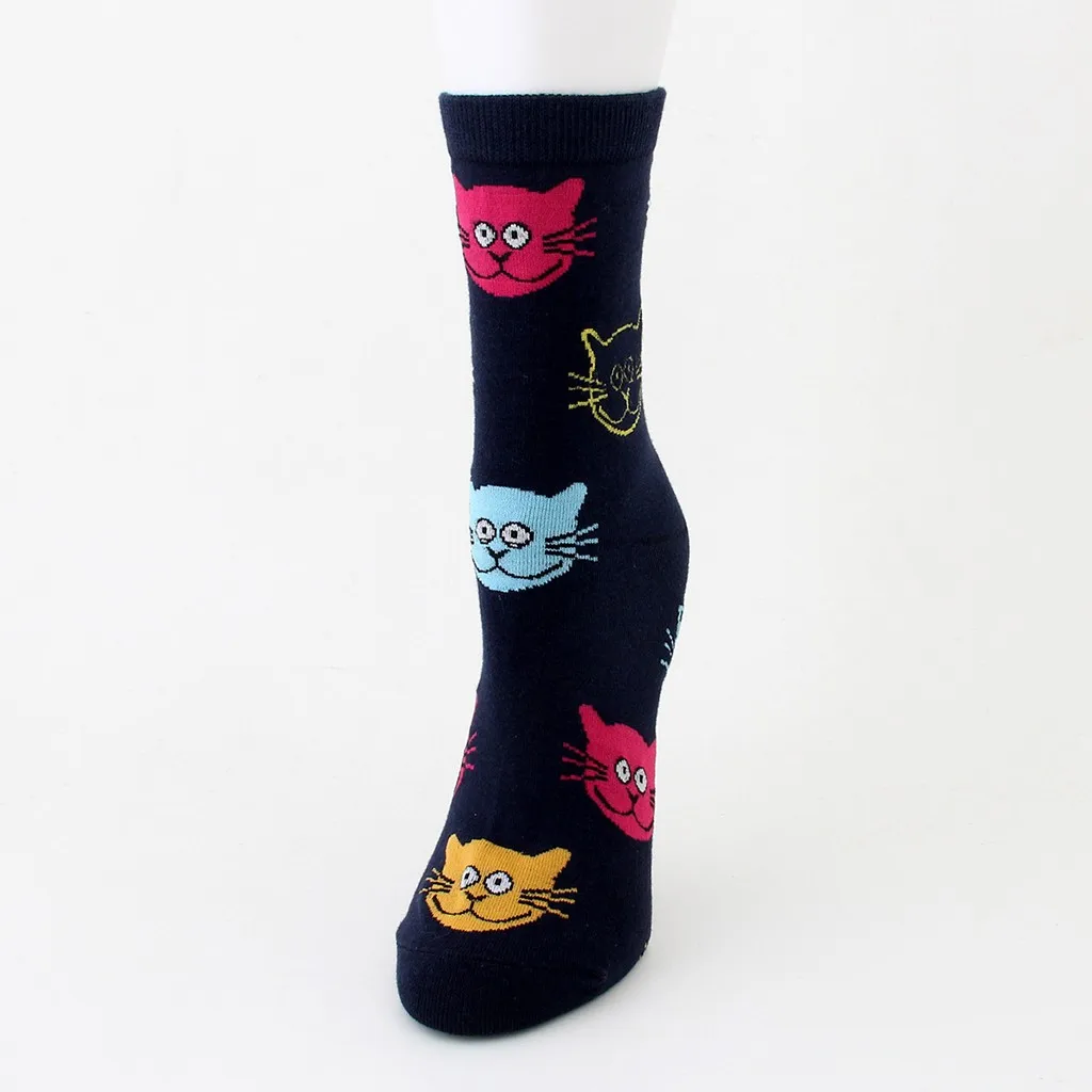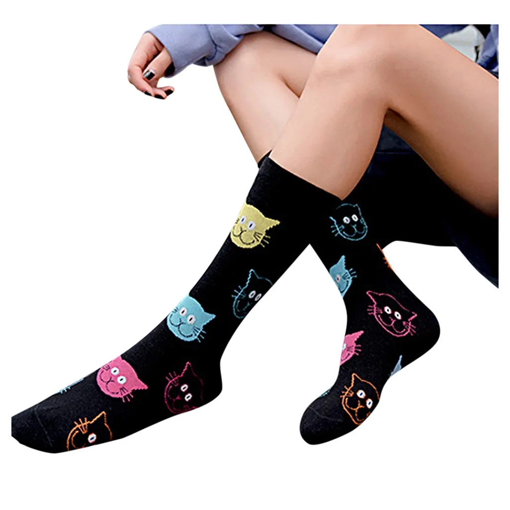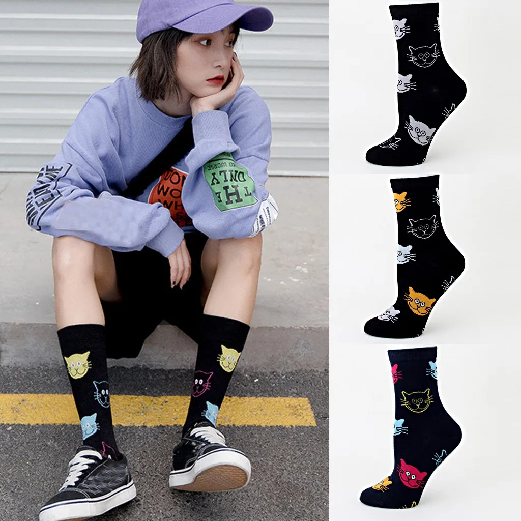 1 пара, женские хлопковые носки, принт с милой кошкой, женские зимние носки