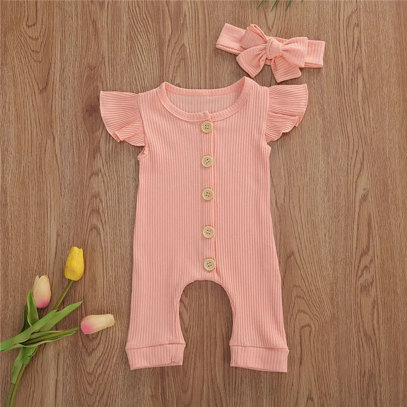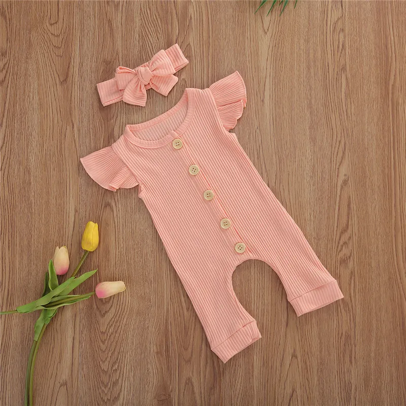 Модный комбинезон с короткими рукавами для маленьких девочек и повязка на голову --- мягкая текстура, а рука ощущается нежной, как облако;