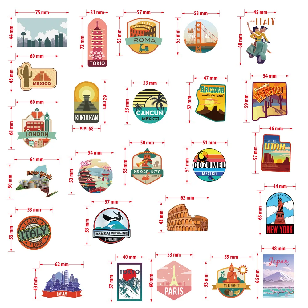 Высокое качество Материал: водонепроницаемые наклейки из ПВХ Характеристики: водонепроницаемый, хороший клей Цвета: как на фотографии Подходящее место: багаж, чемодан, ноутбук, ноутбук, компьютер, планшет, окно, дверь, бытовая техника, велосипед, мотоцикл, гитара, скейтборд, наклейки на стену Будет прилипать к любой чистой гладкой поверхности! Посылка: 50 шт./компл.