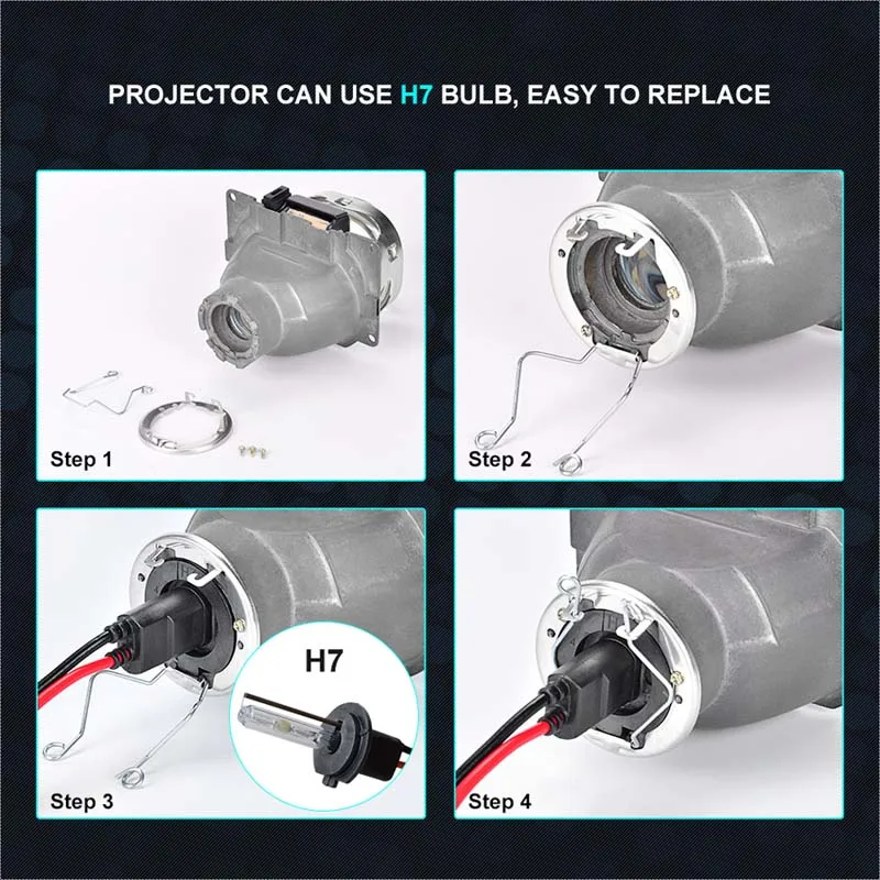 8. Этот объектив проектора подходит для ксеноновых ламп H7/большинство светодиодных ламп H7/D2S HID (лампы в комплект не входят)
