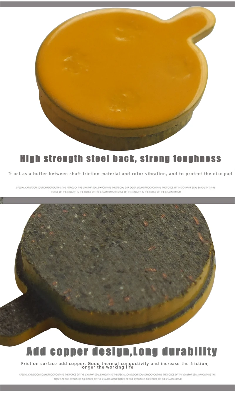 -Как правило, оригинальные подушечки на вашем самокате-полуметаллические, керамика-металлокерамические колодки-модернизированные модели.-Если кататься на самокате в дождливые дни, значительно ускорится износостойкость тормозных колодок.-Установка и регулировка тормозных колодок требует высоких практических нагрузок, пожалуйста, обратитесь к профессиональному механику.-Прошел сертификат tuv/SGS-Анализ материал тормозной колодки производительностиПолуметаллическая колодка дискового тормоза-Основа из высококачественной смолы-Кевларовые синтетические волокна-Сверхтонкий Металлический порошок ≥ 30%-Срок службы ≥ 3000 км (лабораторные данные, реальная производительность будет короче)Керамическая Дисковая тормозная колодка-Основание с высоким содержанием меди-Сверхтонкий порошок смешивания меди, цинка и керамики-Формирование при высокой температуре и высоком давлении-Срок службы ≥ 8000 км (лабораторные данные, реальная производительность будет короче)Спеченные Дисковые Тормозные Колодки-Сверхтонкий порошок смешивания импортной керамики, меди и цинка-Более высокая плотность, Лучшая производительность и более низкий коэффициент износа в дождливые дни-Меньше торможения шума, более низкая скорость теплового распада и более быстрая теплоотдача-Срок службы ≥ 10000 км (лабораторные данные, реальная производительность будет короче)Больше преимуществ-Низкое тепловое затухание-Стабильная производительность свыше 650 ℃-Меньше потерь диска-Низкий уровень торможения
