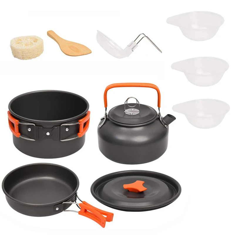 Outdoor Camping Portable Aluminum Alloy Cookware Utensils Kettle Pot Frying Pan Cooking Tableware Set