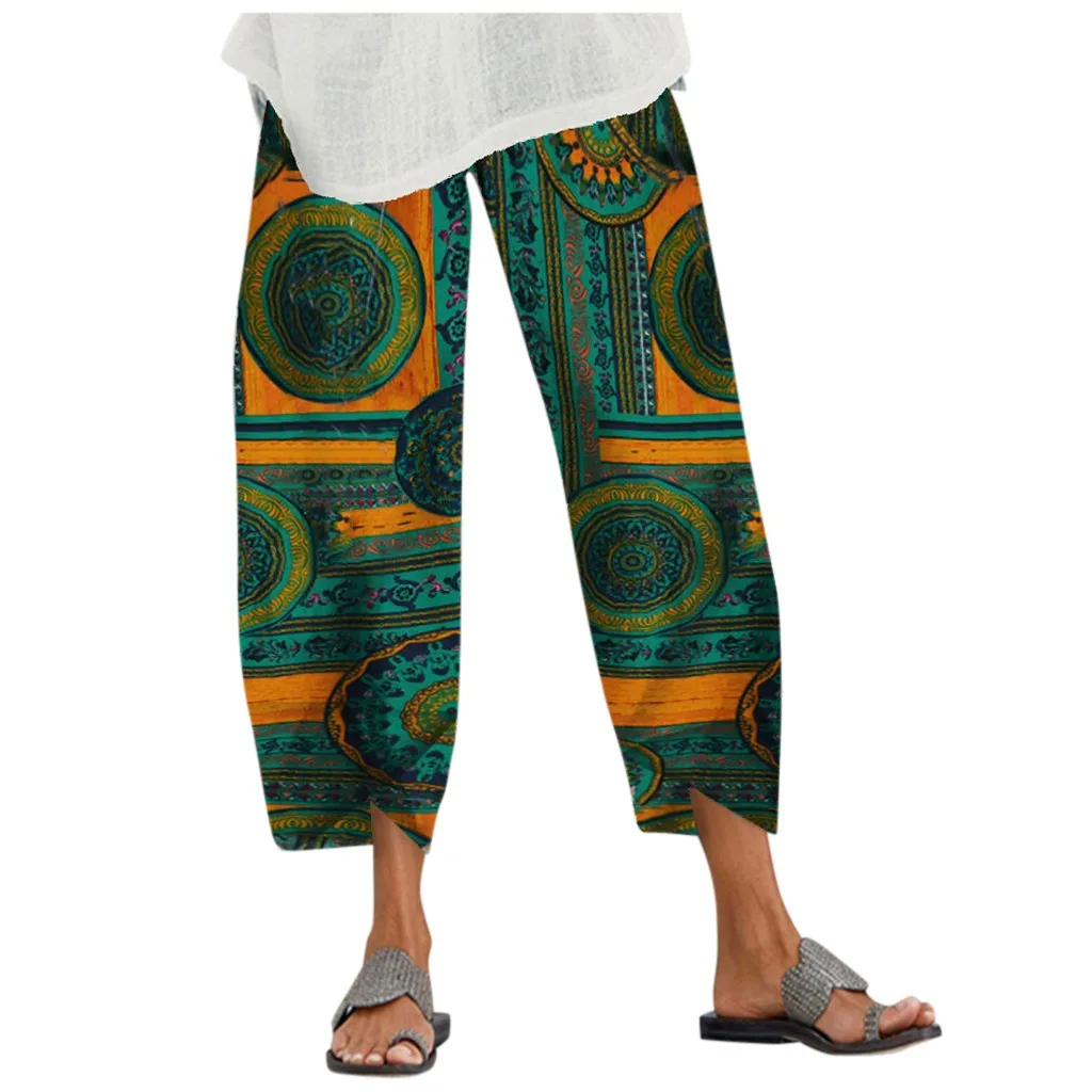 Женские повседневные брюки с принтом в стиле бохо, штаны с эластичной резинкой на талии, свободные штаны-шаровары с карманами