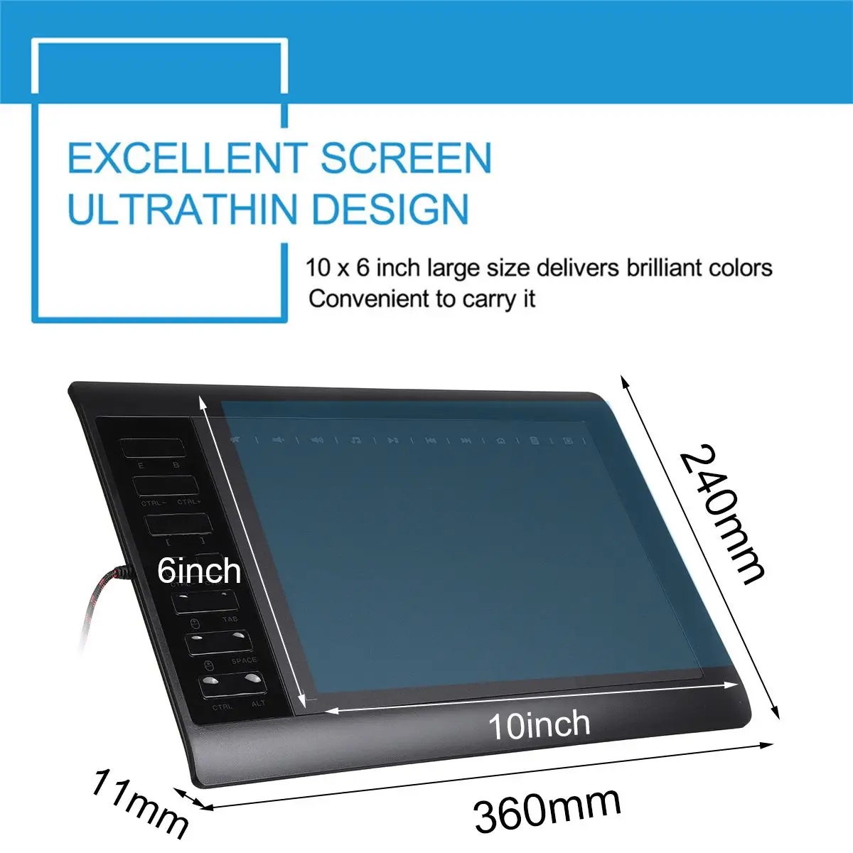 Высококачественный экран, 10x6 дюймов Большой размер обеспечивает яркие цвета. Разрешение 5080LPI делает изображение более ярким, обеспечивает точность цвета