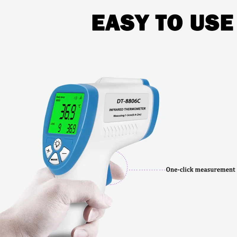 * Функция удержания: нажмите кнопку «Hold», чтобы приостановить измерение, удобно считывать данные. И когда вы нажимаете снова, термометр будет продолжать работать.